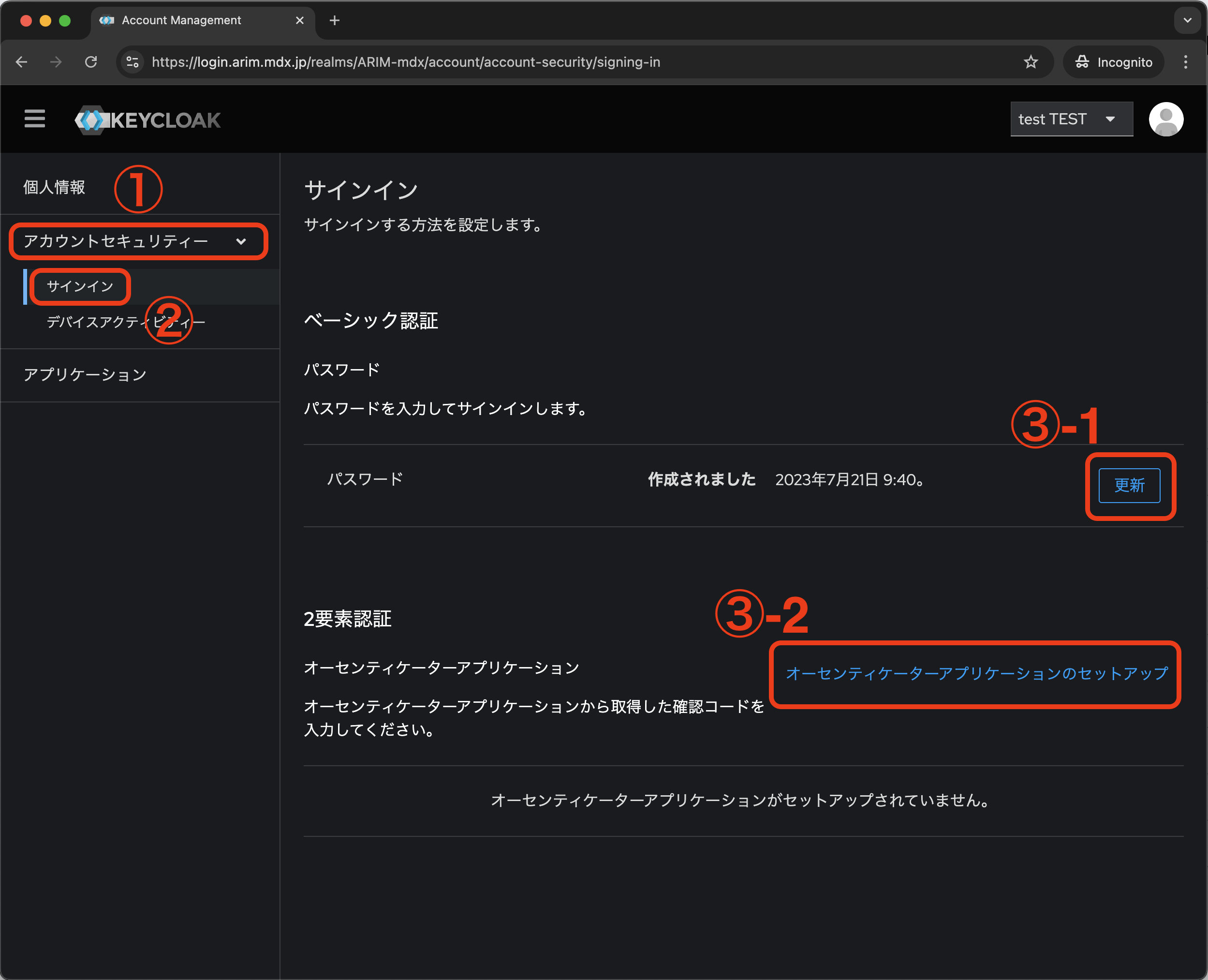 https://login.arim.mdx.jp/realms/ARIM-mdx/account